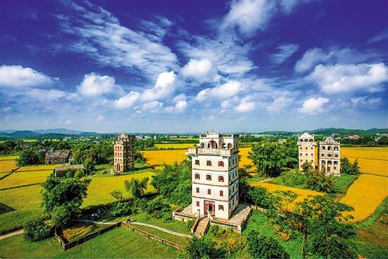 在开平市,1833座碉楼分布在各个镇的田野村落之间。这些始建于100多年前的华侨建筑,混合了多种文化的建筑风格,古希腊的柱廊、古罗马的柱式、伊斯兰的铁雕、巴洛克建筑的山花、中国式的灰雕……不同的建筑元素冶于一炉,形成了独具特色的华侨文化建筑风格。开平碉楼被称为中国华侨文化的纪念丰碑、“令人震撼的建筑艺术长廊”,更是海外侨胞艰苦奋斗、保卫家园以及与中外文化交流的见证者。