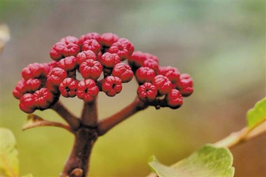 吴茱萸在宁波分布很广泛,可谓“处处有之”。山间遇见赤果累累的它们,再联想起唐人“三茱萸”之雅事,古今时空之差异,瞬间消失,再读这些诗篇,更觉亲切有味了。