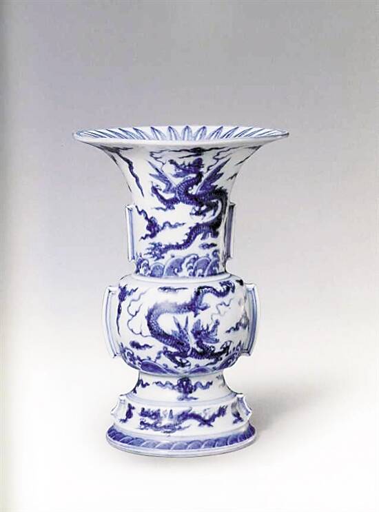 晚明收藏好古之风在士大夫阶层流行,古老的器具尤其是商周鼎彝的形制和纹饰都被利用成为日常生活的装饰,并经过士大夫从新组合搭配,复古风气体现出来的反而是种种全新的创造。古老的觚形器正是在此时成为瓷器仿古造型中的重要品种,并在明代文人书房陈设中占有着特殊的位置。某个时期流行的器物,总能反映出当时社会的价值和审美趣味,发掘这些器物背后的故事和感受时代的迁变,正是收藏的无限乐趣所在。