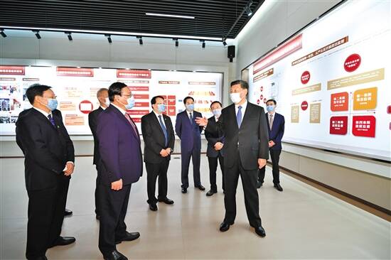 11月12日,浦东开发开放30周年庆祝大会在上海市举行。中共中央总书记、国家主席、中央军委主席习近平在会上发表重要讲话。这是当天上午,习近平等参观“在国家战略的引领下——浦东开发开放30周年主题展” 新华社发