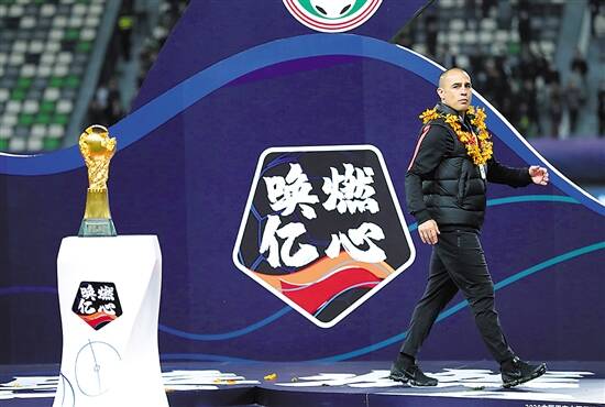 广州恒大主教练卡纳瓦罗在颁奖仪式上 新华社发
