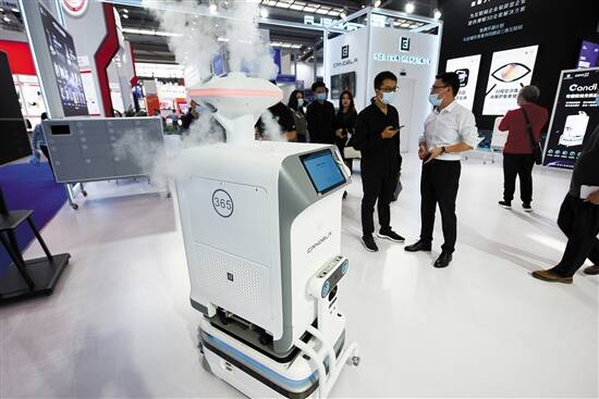 在高交会1号馆的IT抗疫科技专区,记者看到了各类可用于抗疫的硬核技术,包括AI体温预警系统、AR疫情测温筛查解决方案、重大疫情智慧防控平台、新冠病毒核酸检测实验室设备仪器整体解决方案等。要说最亮眼的,还数各式各样功能各异的抗疫机器人。疫情之下,“无人化”操作成为发展趋势,伴随人机交互技术的逐渐成熟,服务型机器人产业已逐渐成型,智能巡检机器人、智能咽拭子采样机器人、自主导航消毒机器人等纷纷亮相。