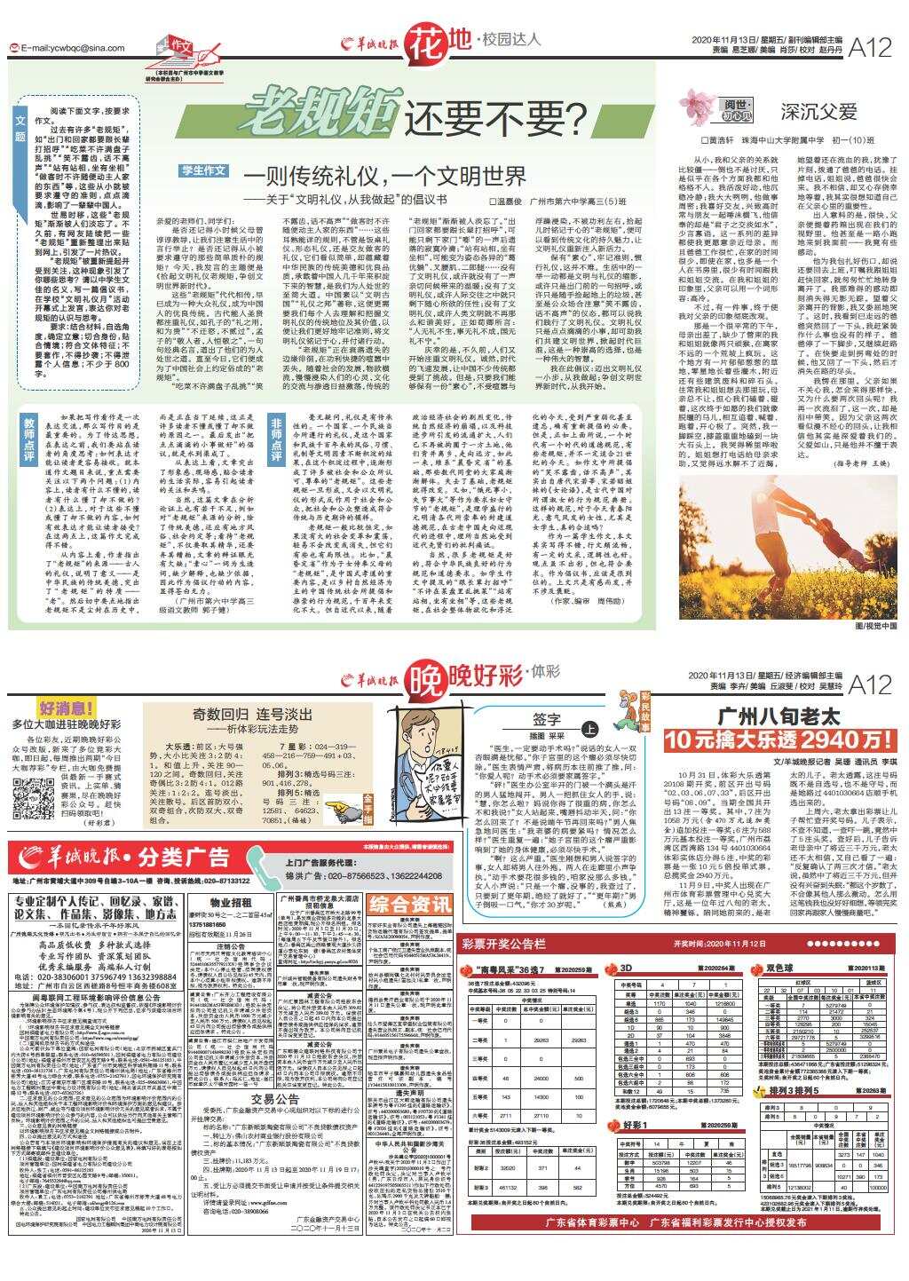 第A12版:花地·校园达人;晚晚好彩·体彩;广告