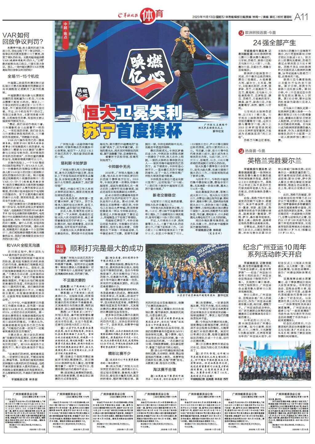 恒大卫冕失利 苏宁首度捧杯