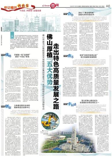 近日,羊城晚报报业集团党委书记、羊城晚报社社长刘海陵对佛山市委书记鲁毅进行专访。鲁毅表示,佛山要进一步释放战略优势、制造优势、创新优势、改革优势、区域优势,“在服务大局中走出一条特色鲜明的高质量发展之路”。