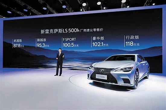LEXUS雷克萨斯新LS于广州国际车展上正式上市。新LS共推出5款车型:LS 500h卓越版、LS 500h臻越版、LS 500h F SPORT、LS 500h豪华版和LS 500h行政版,厂商建议零售价为人民币87.8万元-118万元。
