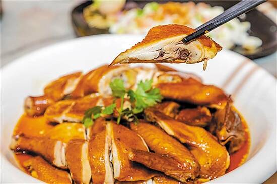 特色餐厅12号风味的玫瑰豉油鸡十分有名,不少食客都慕名而来。鸡的肉质结实,咸甜控制恰到好处,味道浓郁,加了上等玫瑰露酒的芳香,与普通版豉油鸡相比,味觉、视觉感受都非常好。