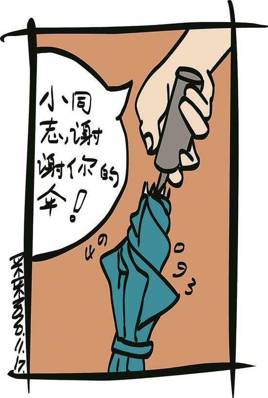 “真是无巧不成书!”老马问:“既然是你家的伞,何必送来?”老人说:“有借有还,再借不难。女儿说,血站正在定制爱心伞,领导听了你的故事,已经决定向‘福彩’门店捐赠一批;加上这把伞,一起为彩民服务。对了,她还叫我代买几注彩票。”说完,掏出10元,放在柜台上。