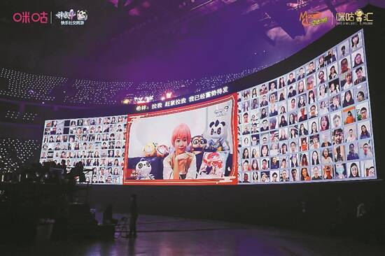 技术创新带来的不止突破性的观看体验,更有颠覆性的云上互动玩法。在5G技术加持下,观众们可以集体“穿越”到咪咕汇现场,争夺观演席C位,并通过屏幕与台上的艺人实时连麦,最大限度地还原线下演唱会现场歌迷幸运时刻。