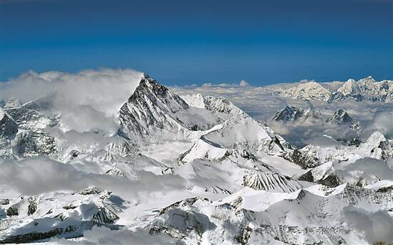 从空中拍摄的珠峰(5月14日摄) 新华社发