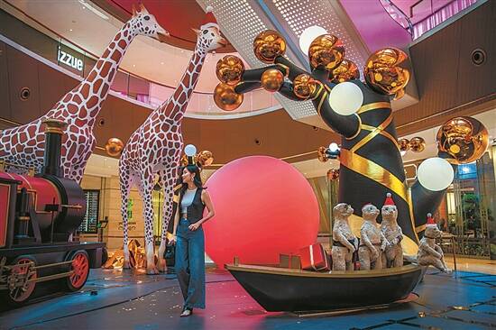 记者了解到,广州太古汇于岁末节日季在商场内筑起一室异旅胜景,打造漫想大道,用天马行空的旅行场景与南半球元素组合出一个个令人惊喜的主题装置,包括悬浮在上空的飞艇装置、落日打卡点等,还有塔罗占卜及户外巴士等场景。
