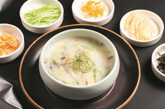 鲜甜醇香、口感丰富的柠香黄鱼花胶羹(餐厅供图)