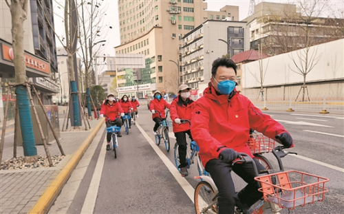 姚麟带领医疗队骑行在武汉街头散心