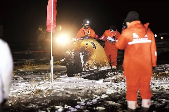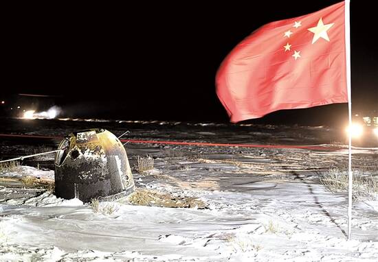17日凌晨,嫦娥五号采用半弹道跳跃方式再入返回,在内蒙古四子王旗预定区域安全着陆 新华社发