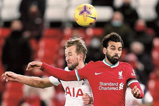 凯恩(左)和萨拉赫争顶 图/视觉中国