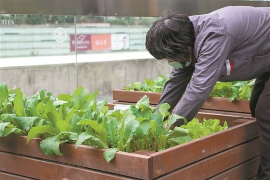广州太古汇相关负责人介绍,“屋顶菜园”的目的在于以菜园为节点连接社区,通过举办种植体验活动,让参加者一尝都市农耕的乐趣,感受绿色生活的意义。