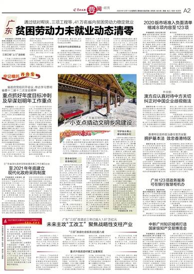 羊城晚报讯 记者鄢敏、实习生林少娟报道:就业扶贫是精准扶贫的重要举措,12月16日,记者从广东省脱贫攻坚系列新闻发布会上获悉,截至目前,广东省内41万名贫困劳动力稳定就业,实现未就业动态清零。