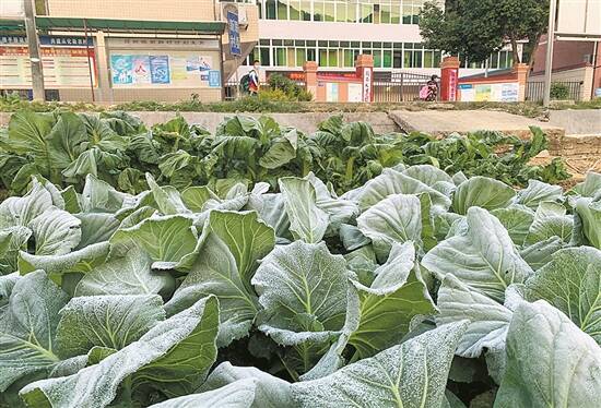 今早,从化吕田新联村芥菜结霜了 羊城晚报记者 梁怿韬 摄