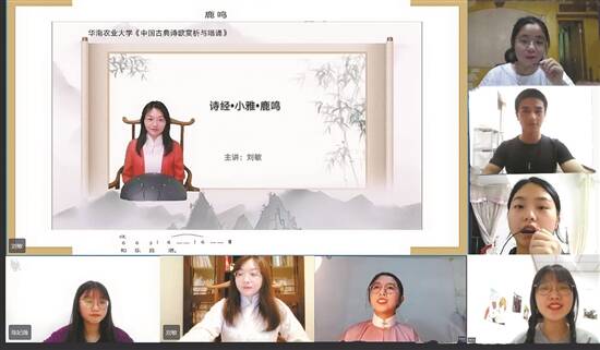 保持学生的专注度和活跃度是线上课堂的关键。在“线上虚拟教室”里,华南农业大学艺术学院教师刘敏为学生讲授“合唱与指挥”“中国古典诗歌赏析与唱诵”等课程,在线指导指挥动作、发声技巧等,以“隔空”合唱的方式增强师生间的互动。