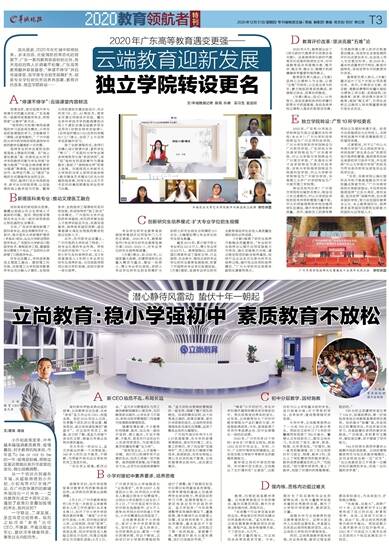 流光易逝,2020年在忙碌中即将结束。岁末回首,在疫情防控常态化的背景下,广东一系列教育新政纷纷出台,各大高校的育人步调毫不松懈,广东高等教育翻开崭新篇章:“停课不停学”开启云端课堂、医学类专业招生规模扩大、创新专业学位研究生培养再部署、教育评价改革、独立学院转设……