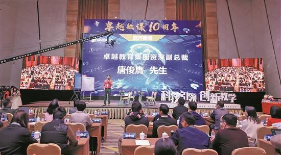 卓越教育第十届微课大赛颠覆对决现场,卓越教育集团资深副总裁唐俊膺开幕致辞