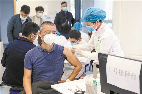 深圳市南山区大冲社康中心,深圳市民正在接种新冠疫苗 人民视觉供图