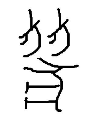 甲骨文:耦。上为双耒(翻土工具,相当于早期的犁),下为一犬