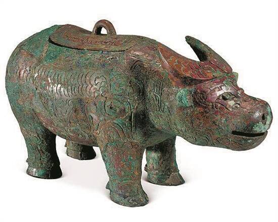 河南安阳殷墟遗址出土的青铜牛尊,高22厘米、长40厘米、重7公斤。此牛没有肩峰,是尚未驯化的原牛