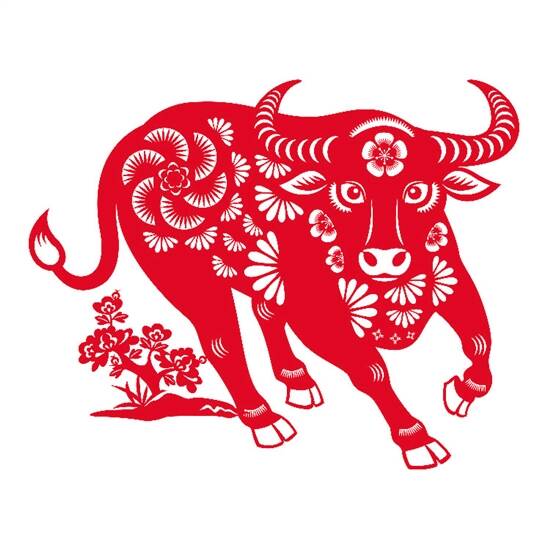甲骨文:牛。上为牛角,下为牛耳,中间一竖为牛脸