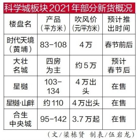 从去年下半年开始,随着合生中央广场、星樾·山畔开盘,加上原有的大壮名城和星樾,科学城板块货量大增。大壮名城和合生中央城都是过百万平方米的大型城市更新项目,而星樾的总建筑面积也接近100万平方米,有2000多套住宅供应市场。上周六,全新项目时代天境(黄埔)开放营销中心及样板房,为该板块增加18万平方米货量,科学城板块再添“生力军”。