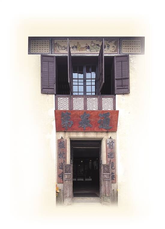 在庭院最靠里处,即现存郑家大屋的西南面,是一座上书“日月光华”四字的两层门楼。“从我们发现的家族文书推断,这门楼以及再往西南现已不存的建筑部分,就是郑观应出资为自己这一房修建的。1885年之后,郑观应隐居澳门约五年,就是在这里编著了《盛世危言》。”