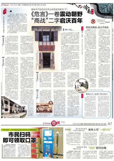 更可贵的是,从粤商中应运而生的思想家郑观应,首次提出了“商战”甚于“兵战”的论断,主张中国应该把反对经济侵略放在比反对军事侵略更为紧要的地位。与列强“商战”,必须破除以农为本、以商为末、重本抑末的成见。因此他超越“以农立国”的传统、强调“以商立国”,即主张发展资本主义,要求政府实行护商,包括收回海关、保护关税、裁撤厘金、自由投资等政策措施。