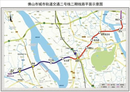 目前,佛山在建的城市轨道交通项目有3条,分别为2号线一期、3号线、广州7号线西延顺德段。