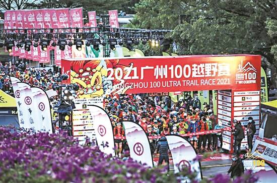 2021“广州100”越野赛于1月9至10日举行,为“广州100”赛事品牌举办的第二届赛事,吸引了全国2500余名越野跑爱好者参与。赛事依托广州马拉松赛成功经验,在赛道沿途科学设置14个综合补给点,并准备了 多种特色地道美食。