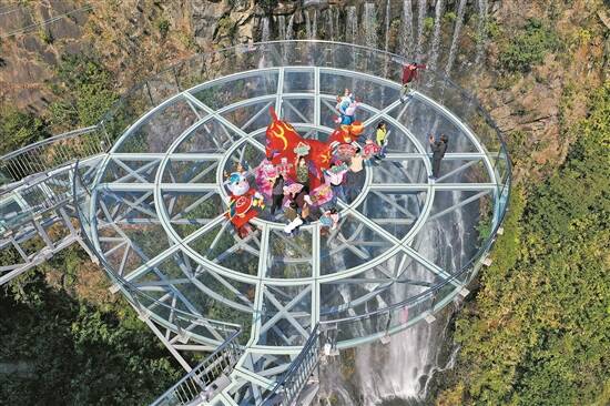 清远清新区的古龙峡今年春节再度推出三个全新的网红项目:春心、红牛、拈花指,给游客送上新年最牛气的祝福。网红河谷、玻璃栈道环线上还将布置牛年花径,供游客打卡。