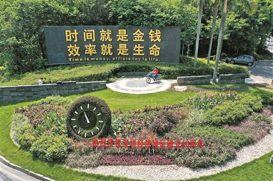 “时间就是金钱,效率就是生命”口号 羊城晚报记者 王磊 摄