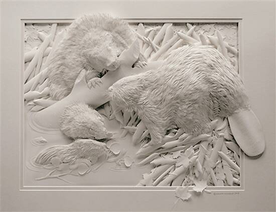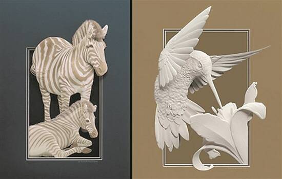 自20世纪80年代中期以来,卡尔文就一直在尝试用纸创作雕塑。将一层层造型好的纸片叠加起来,一个个栩栩如生的雕塑作品就呈现出来。完成一件作品后,艺术家还会用灯光来强调作品的立体感,让人对作品有更直观的理解。