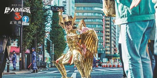 电影的笑点也颇为密集。《唐人街探案2》里让刘昊然和王宝强扮成女护士,第三部里则让他们穿上了葫芦娃的衣服,并且还让妻夫木聪变身黄金圣斗士、让托尼·贾Cos樱桃小丸子……片中出现了日本著名漫画侦探金田一的经典对白“我以爷爷的名义起誓”,也算是致敬了日本的推理文化。
