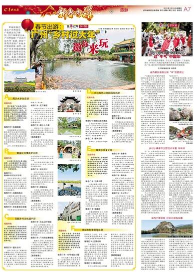 羊城晚报记者从广州市文化广电旅游局了解到,2021年年初以来,广州市围绕“广州乡村过大年”主题,通过一系列手段推广本地乡村旅游资源,焕然一新的广州乡村旅游面貌及传统特色年俗文化成为这个春节的最大看点。本期,《旅游周刊》将为你推荐几条周边热门“乡村过大年”线路。