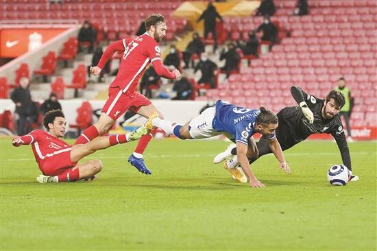 羊城晚报今晨消息 记者徐扬扬、实习生雷怡婷报道:英超第25轮2月21日战罢5场,切尔西做客以1比1战平南安普顿,联赛四连胜就此止步;卫冕冠军利物浦则在主场0比2不敌埃弗顿,惨遭英超主场四连败。