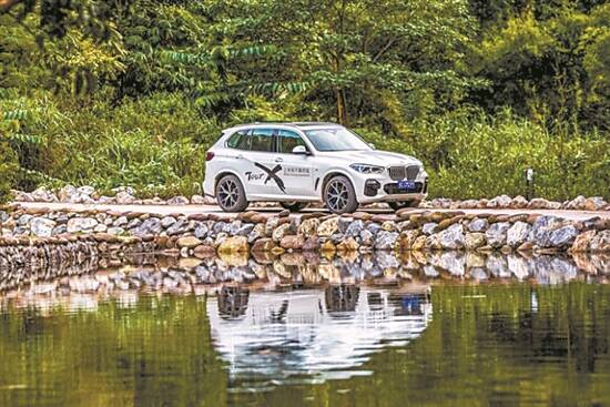 在泥泞的山路,对新BMW X5是个很大的考验。山路非常狭窄。BMW X5配备沙地、岩石、碎石和冰面四种越野模式选项,在这种路段,直接使用的就是岩石模式。由于草丛不断剐蹭车身,导致车内不断的发出报警声。通过使用陡坡缓降功能,手动将速度降低到时速3公里的时候,就完全将油门刹车交给了车辆系统本身。这时车底就会不断发出咯咯的声音,缓降系统持续调整,让车辆稳稳当当地往下探路,这个过程中几乎没有出现“超速”猛冲的状况。作为驾驶员,只要握好方向盘,其余的就交给车辆,就能顺利通过。