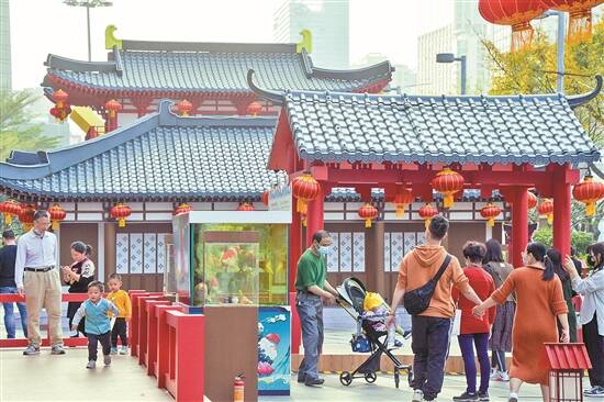近年,国人的文化自信体现在生活的方方面面,现代商业也不例外。牛年春节期间,广州不少大型商场引进传统文化,打造了多样的春节互动主题展。记者了解到,牛年元宵节当天,正佳广场将推出“上元灯会”,现场举行有奖灯谜竞猜、射箭投壶、汉服巡游、古风市集等活动,还原盛唐时期上元节的繁华景象。另外,正佳广场内古香古色的广正街也将举行“羊城往事”娱乐活动,为青年群体提供休闲好去处。