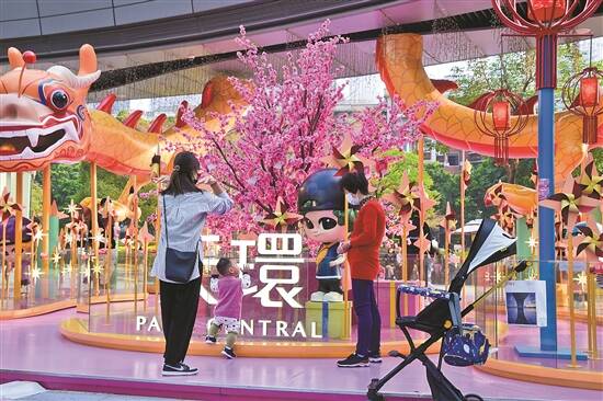 各家大型商场潮流喜庆的氛围吸引了众多市民到场打卡。在天环“好市发生”春节主题展,市民周小姐对记者表示:“现在传统意义上的年味淡了,将传统文化与商场相结合,以年轻人更喜闻乐见的方式打造新年的气息,是很有意思的创新方式。”
