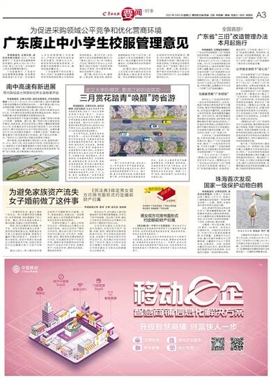 羊城晚报讯 记者孙唯、通讯员粤教宣报道:近日,广东省教育厅、广东省市场监督管理局发布通知,宣布从2021年3月5日起,废止《关于进一步加强中小学生校服管理的意见》。