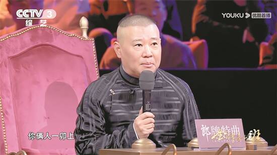 与陈佩斯不同的是,郭德纲作为近些年来游走在各大节目中的相声演员,其综艺感很强,不仅点评时笑点包袱信口拈来,时不时还展现一手自己的才艺本事。不仅如此,郭德纲还充当了现场主持人的角色,在演员们表演完成之后,由他开启点评的话茬,或是与其他两位导师互动,为节目制造许多笑点和看点。在相声《恋爱男女》中,逗哏演员李圆圆是一名来自四川的女演员,自学相声多年,其舞台表现比捧哏演员、来自天津的职业相声演员许健要逊色一些,郭德纲便直接指出李圆圆的不足,甚至说让她“在北京玩一圈就回家吧”。就在李圆圆泪流满面、陈佩斯和英达两位导师给出“淘汰”的评判时,郭德纲出乎意料地给了一个“录取”结果,制造一个大反转,为节目效果拉满。在选手们的介绍中,很多人直白地说“为郭老师而来”,想要加入郭德纲的班级。在前几期节目中,郭德纲也成为最抢手的一名导师。