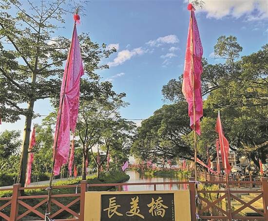 再次携妻回到广东省普宁市梅塘镇长美村时,我被眼前的古村美景惊艳到了。入眼处,小桥流水人家,花海竹影绿茵,长亭回廊绿道,白墙黑瓦老巷,灯影樯橹歌声……穿过新长美桥,沿着宽敞明净的村道,汽车可以直接开到老宅门口。我笑着调侃妻子,你们村真是“乌鸡变凤凰”啊,立刻招来一顿白眼。