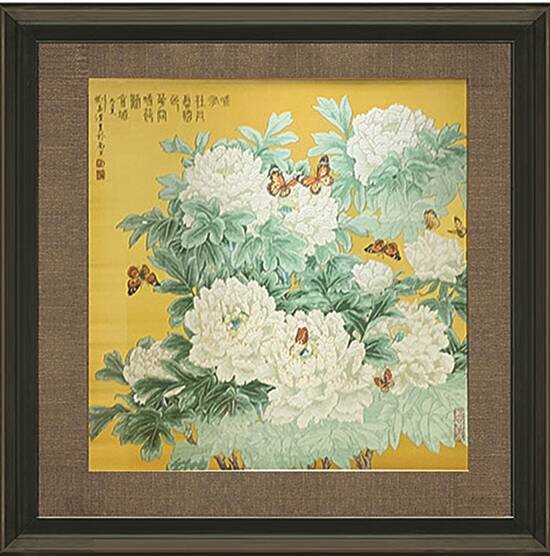 黄底织金云锦框画《花开时节动京城》