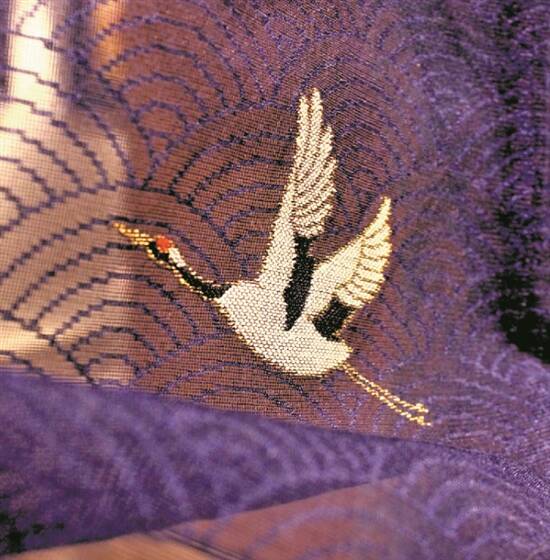 失传技艺的复苏——《银海飞鹤》妆花纱披肩(局部)