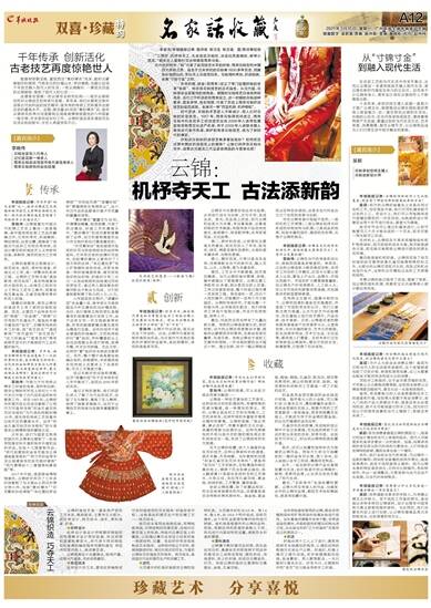 最后,“名家背书”也是收藏的要素。云锦大师及传承人的作品、与画家合作的云锦作品等,都因艺术性和稀缺性,更具有收藏价值。