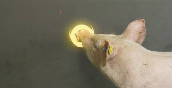 实验用到的四头小猪分别是两只约克郡猪和两只帕内平托微型猪。它们本身并没有什么特别之处,但在接受了科学家的训练后,它们学会了用嘴按下游戏杆,从而移动屏幕上的光标到指定目标——这样做,它们便可得到一份非虚拟食物的奖励。